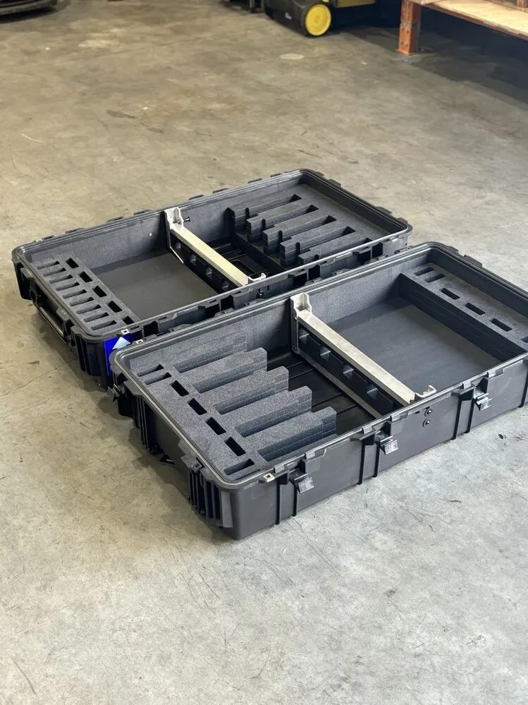 Black high density AFC PE Type closed cell foam material with custom Weapon retention system.