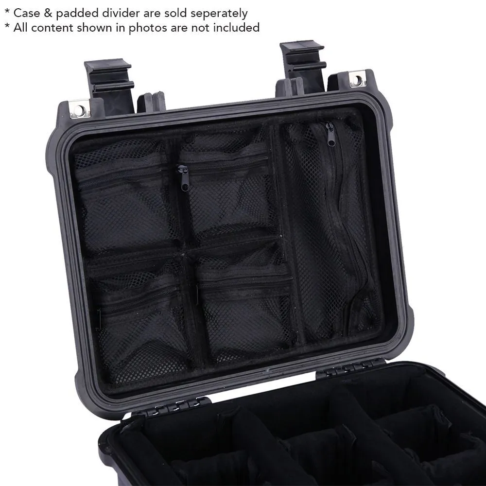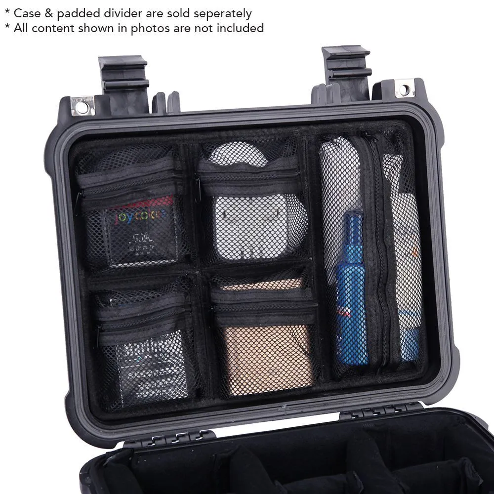 The Evolution Gear Lid Organisers are designed to fit into the Evolution Gear 3530 Utility Hard Case. The organiser spans the entire lid of the case and are complimented by a varying size of pockets.
