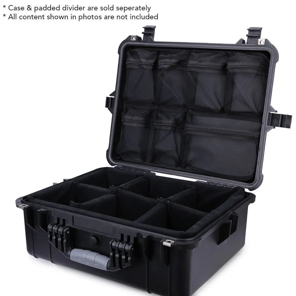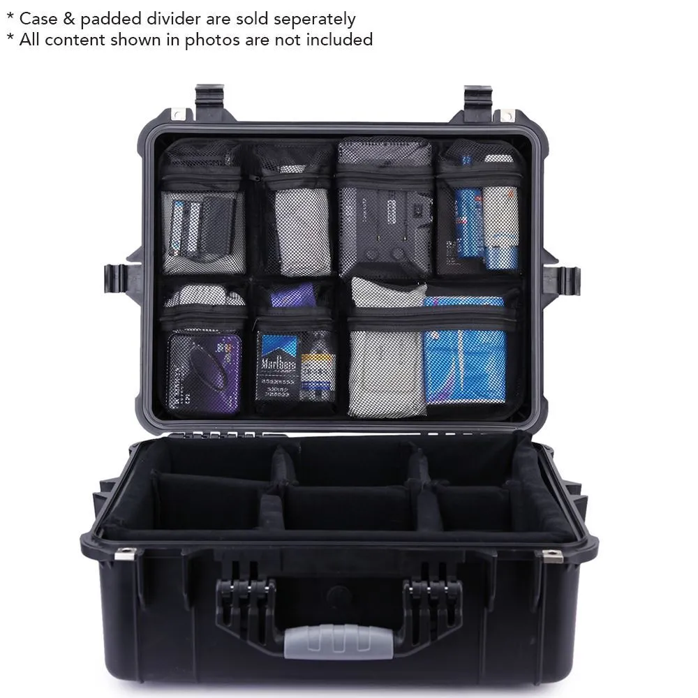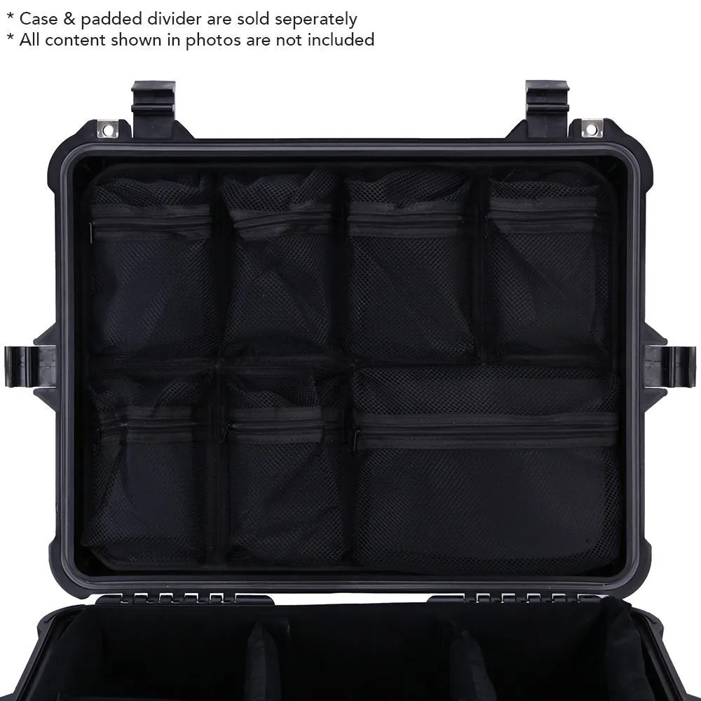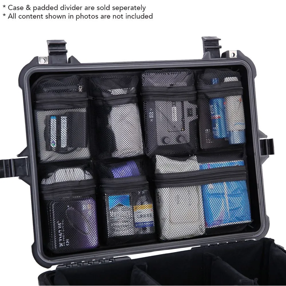 The Evolution Gear Lid Organisers are designed to fit into the Evolution Gear 3560 Utility Hard Case. The organiser spans the entire lid of the case and are complimented by a varying size of pockets.