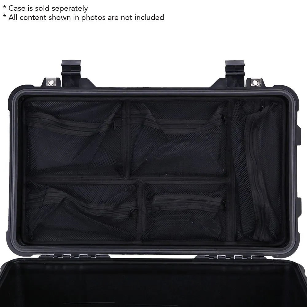 The Evolution Gear Lid Organisers are designed to fit into the 5510 Evolution Gear Trolley Hard Case. The organiser spans the entire lid of the case and are complimented by a varying size of pockets.