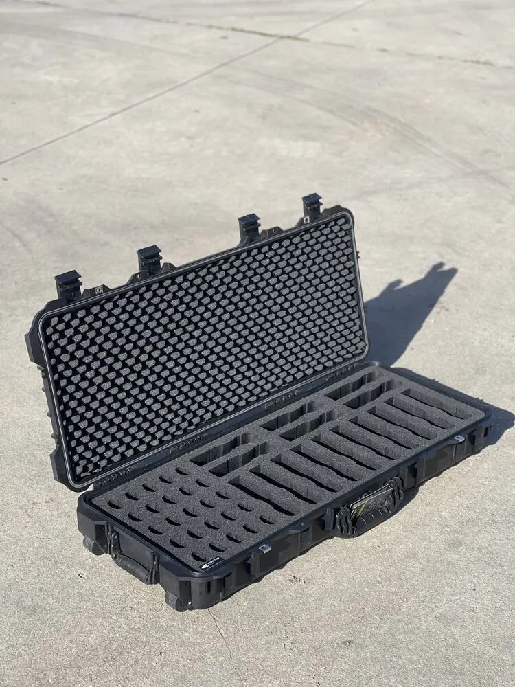 The HD Series Rifle Hard Case is constructed from Polypropelene (PP) engineered plastic. PP is specifically chosen for its machining and fabrication qualities and also for its structural applications when lightweight, impact resistance, strength, and stiffness are required. These tough cases are ideally used for hunting and tactical applications and are also waterproof, dust-proof, shock resistant and able to withstand harsh environments.